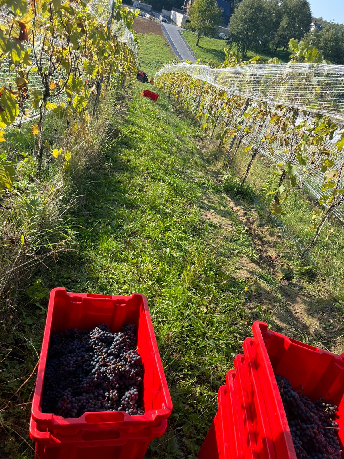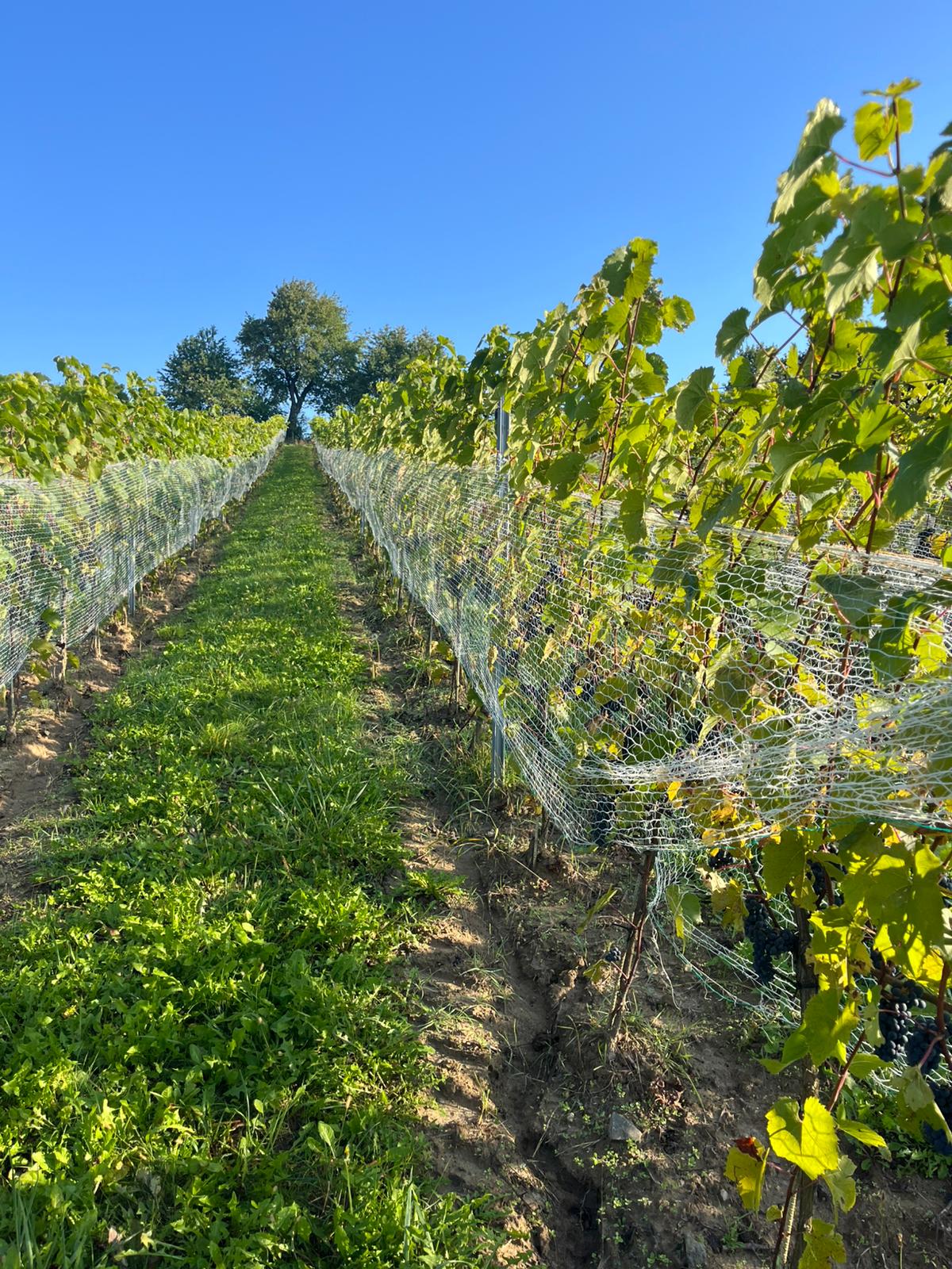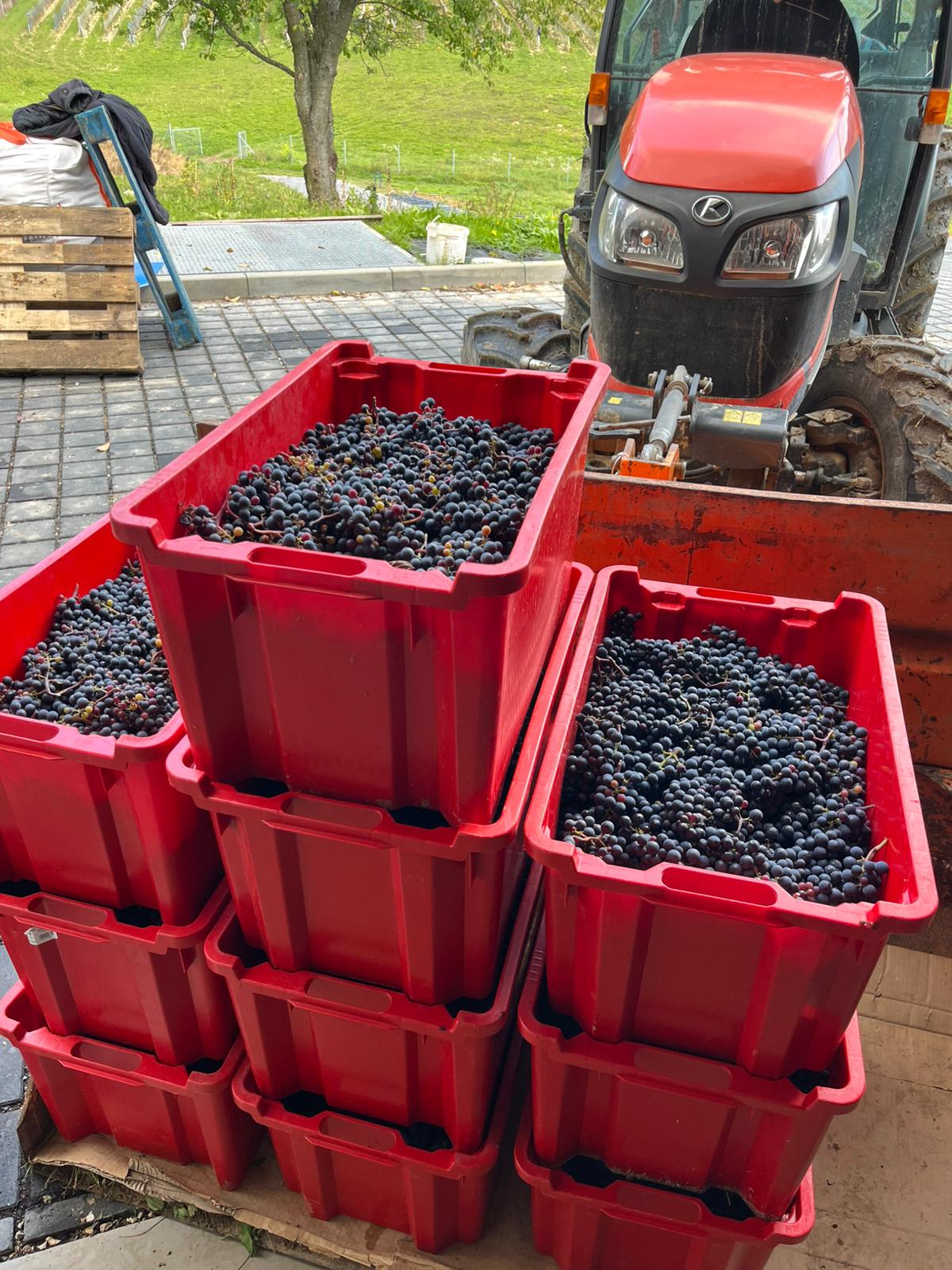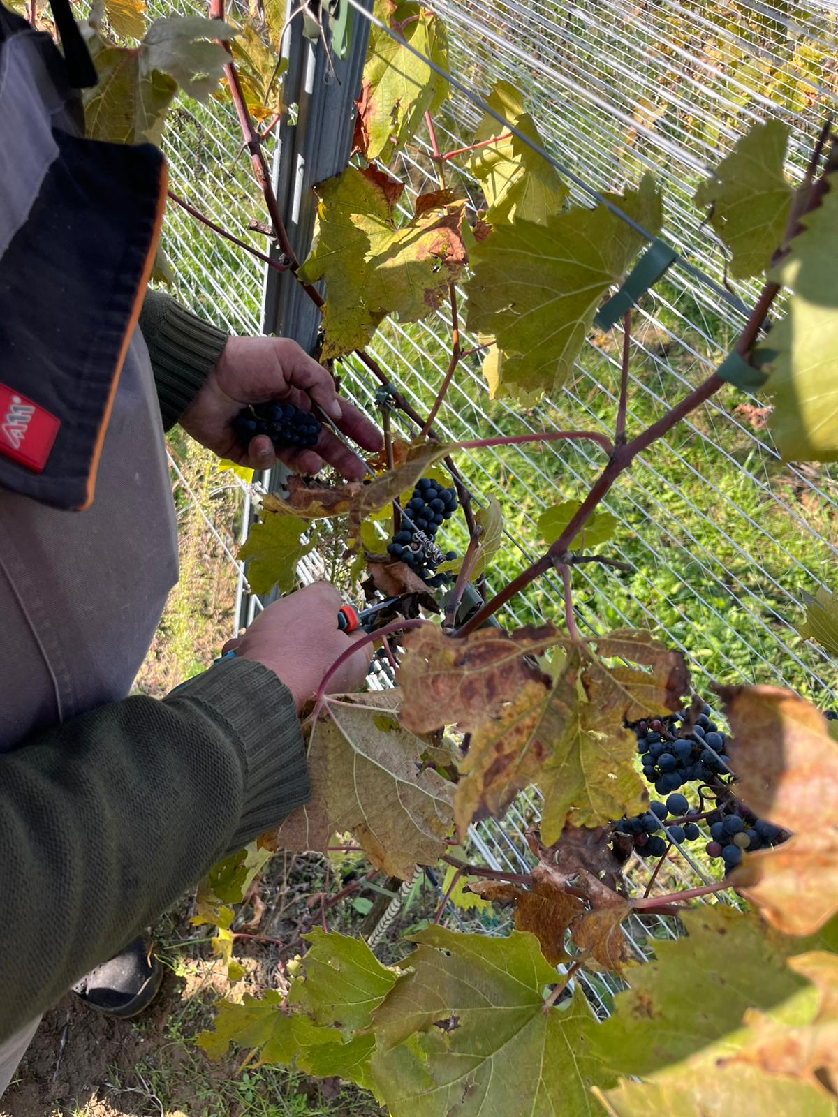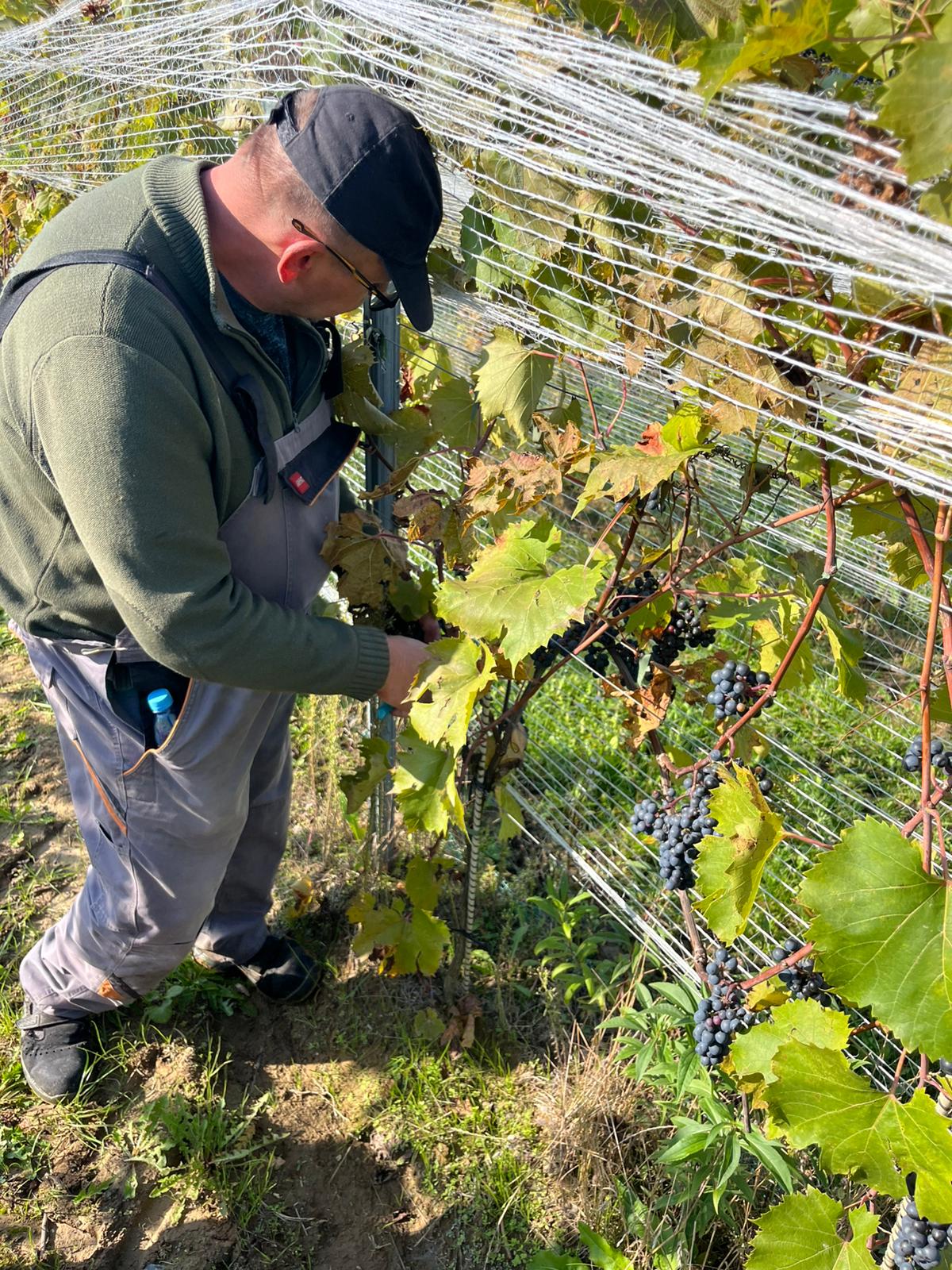 Praca wśród rzędów ciemnych kiści ma inny rytm niż przy Solarisie. Tutaj czuć wagę jesieni, zapowiedź win cięższych, bardziej nasyconych. Kiście, choć mniejsze i zwarte, błyszczą jak paciorki ukryte wśród liści, które zaczynają przybierać barwy ognia. Marechal Foch dojrzewa szybko, dzięki czemu unika kaprysów chłodniejszych dni, a Leon Millot, choć bliski kuzynowi, wnosi własny charakter – z jednej strony dzikość owocu, z drugiej elegancję dobrze zbalansowanego wina.
