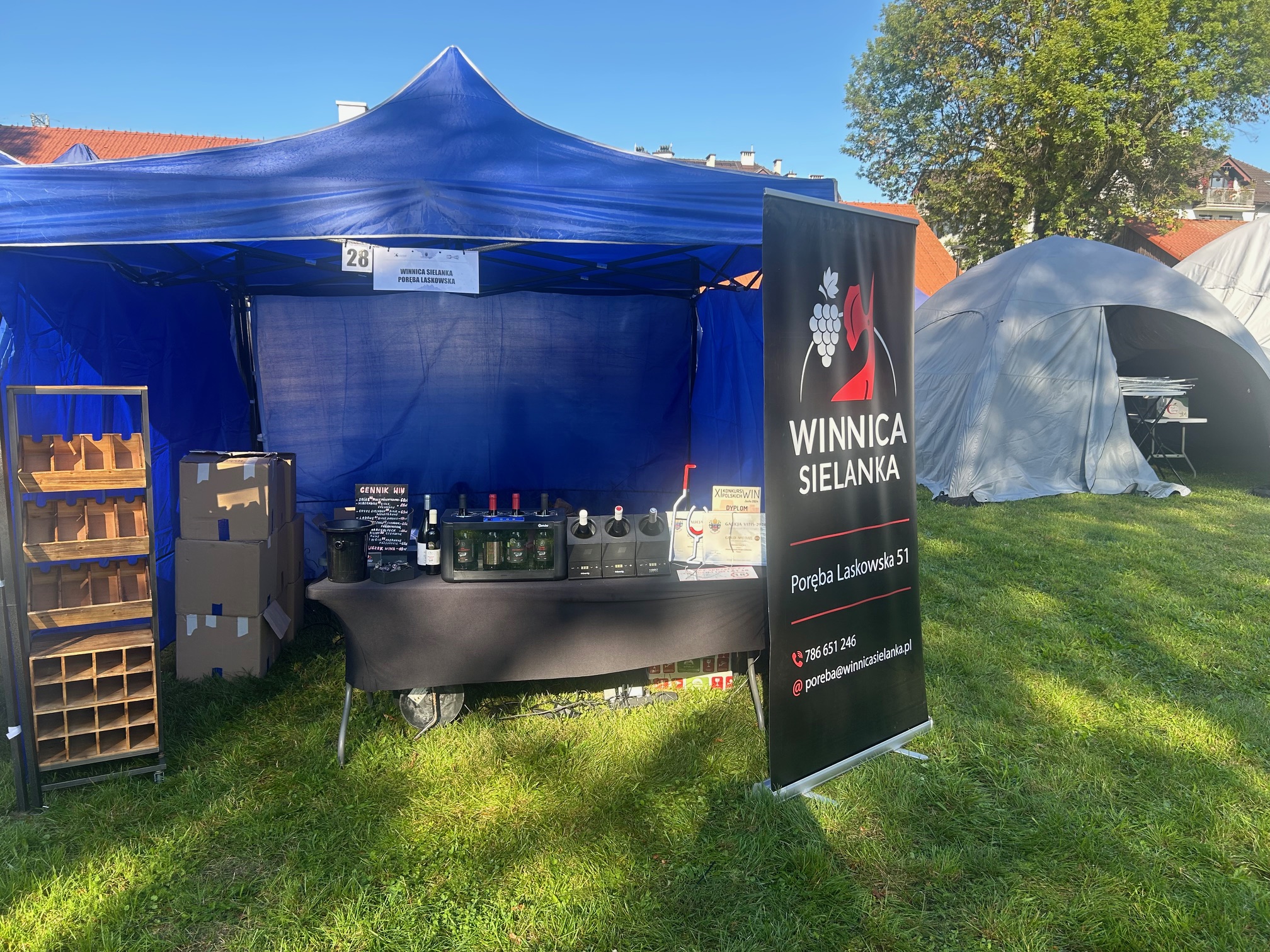 Atmosfera przypominała rodzinny piknik, w którym każdy znajdował coś dla siebie: dzieci biegały pomiędzy stoiskami, starsi zatrzymywali się przy degustacjach, a miłośnicy dobrego jedzenia i picia odkrywali bogactwo polskich smaków. Wśród ponad 70 wystawców – od producentów miodów i serów po rzemieślników tworzących ceramikę czy naturalne kosmetyki – swoje miejsce miały też wina z lokalnych winnic. Dla nas była to przestrzeń, by opowiedzieć o pasji, która zrodziła się wśród winorośli i przenosi się do butelek, a później do kieliszków.